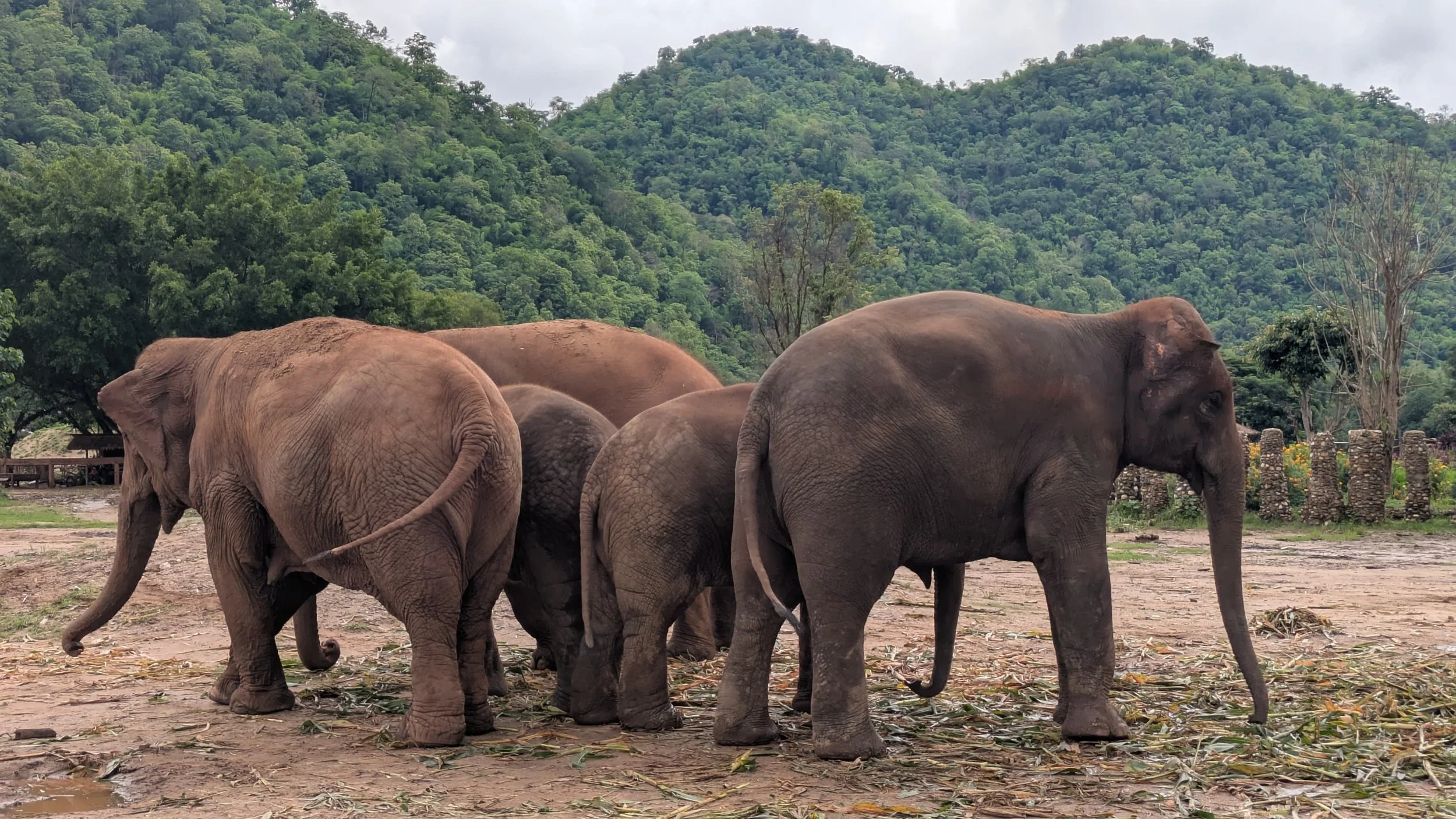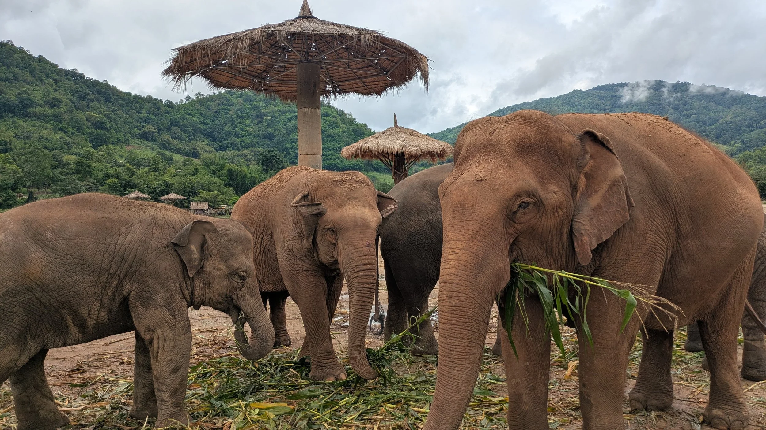 The Elephant Nature Park was a real highlight. An ethical elephant sanctuary, they rescue elephants born in to entertainment or logging work from all over Thailand, and give them a peaceful place to live out their lives. In order to remain ethical and working for the elephants’ best interests, there is strictly no touching, and of course no bathing or riding the animals. The elephants were free to move around as they chose, and were never encouraged by staff to be close to us, but many felt safe and curious enough to move nearer and sniff us. I felt so lucky to be standing so close to such magnificent creatures, and was amazing at how much we could share a space with them, without it ever feeling like we were negatively affecting the elephants. Our group was apparently lucky to see elephants playing in the water and playing in mud, as well as some of the teenagers running happily alongside each other. I walked around with my mouth agape in awe for most of the day. We were surrounded by so much beauty.