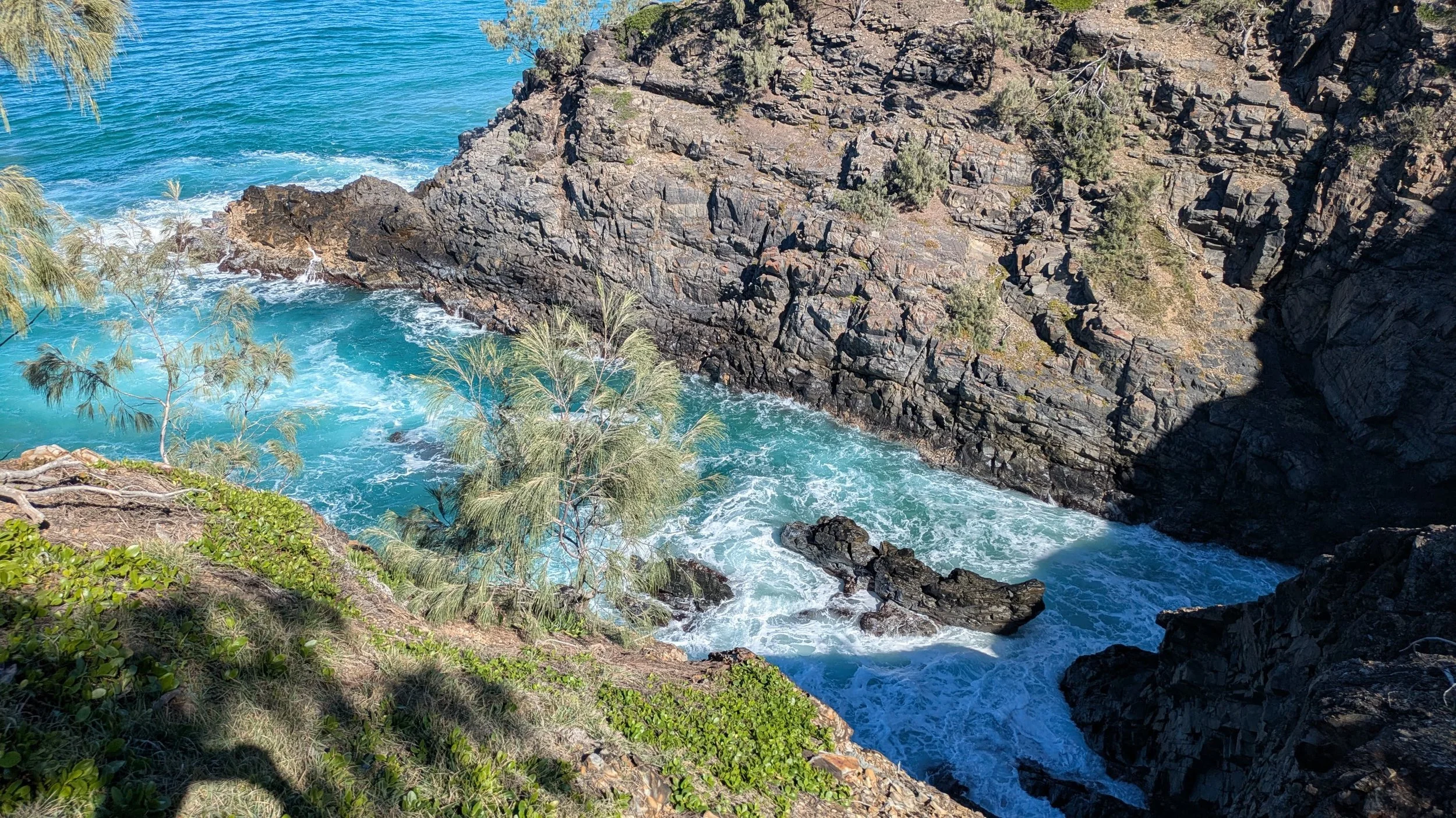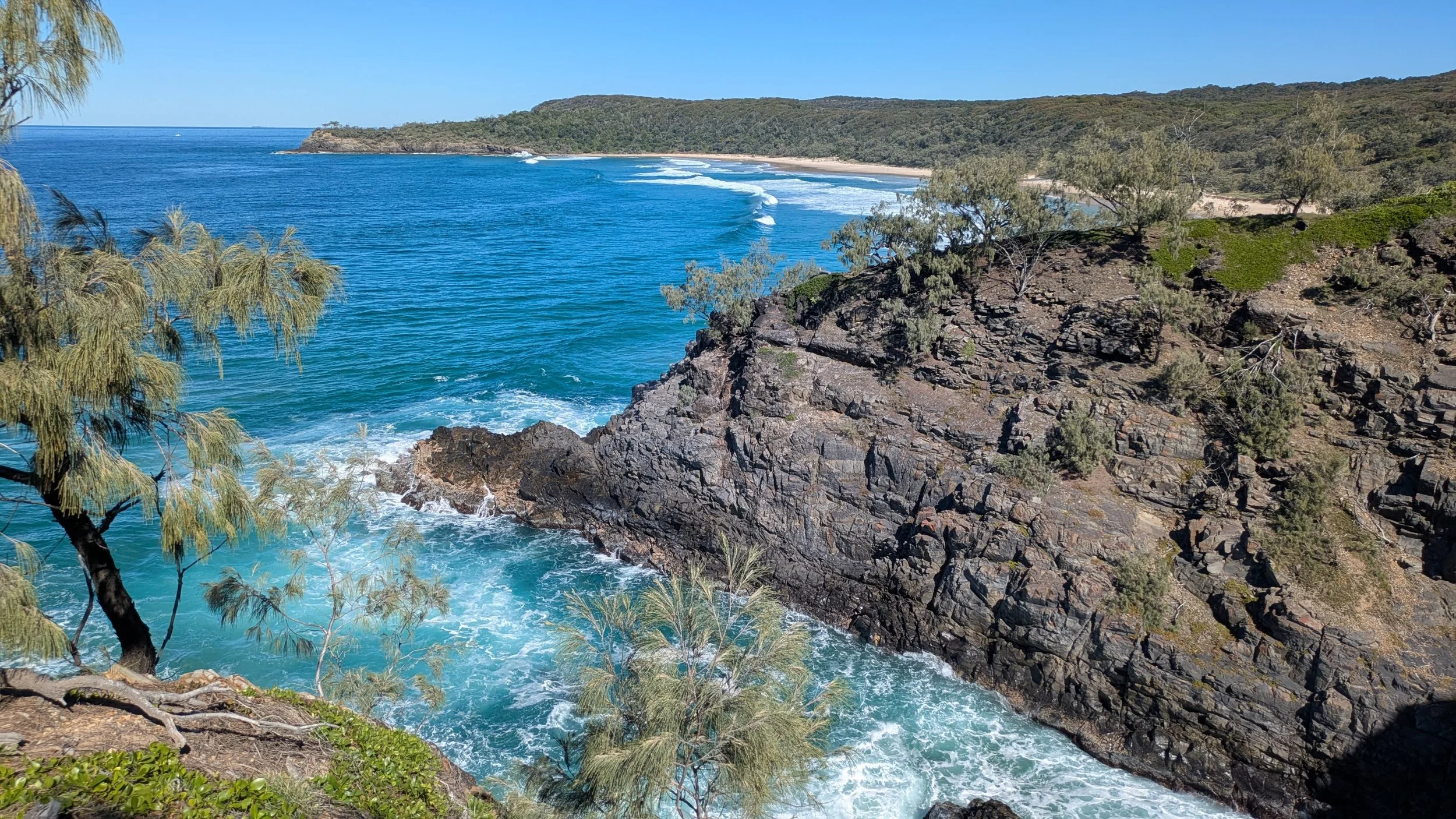 To be honest, I didn’t feel much better, but having seen the kangaroos and the sunrise I decided to catch the shuttle back to Noosa and find time for that beach day (it counts as rest). After leaving my bags in the hostel I caught a bus down to Castaways Beach, a quiet section of the coast with soft sand right up to a two metre drop down to foaming waves over wet sand below. I let the cold water wash over my feet for a while, but had no desire to go in any further. I sat and read and rested. My beach day desire was fully satiated when the next day I made an early start and completed the coastal walk in the Noosa National Park. With the help and company of Theresa who I met part of the way round, I saw a pod of dolphins offshore, a sea turtle who came up for a quick breath and a kookaburra sitting in a tree above the trail. The highlight though was sitting in the sun - slightly hotter than the previous few days - at Alexandria Bay, a long quiet beach within the national park. I didn’t realise how much I’d missed it.