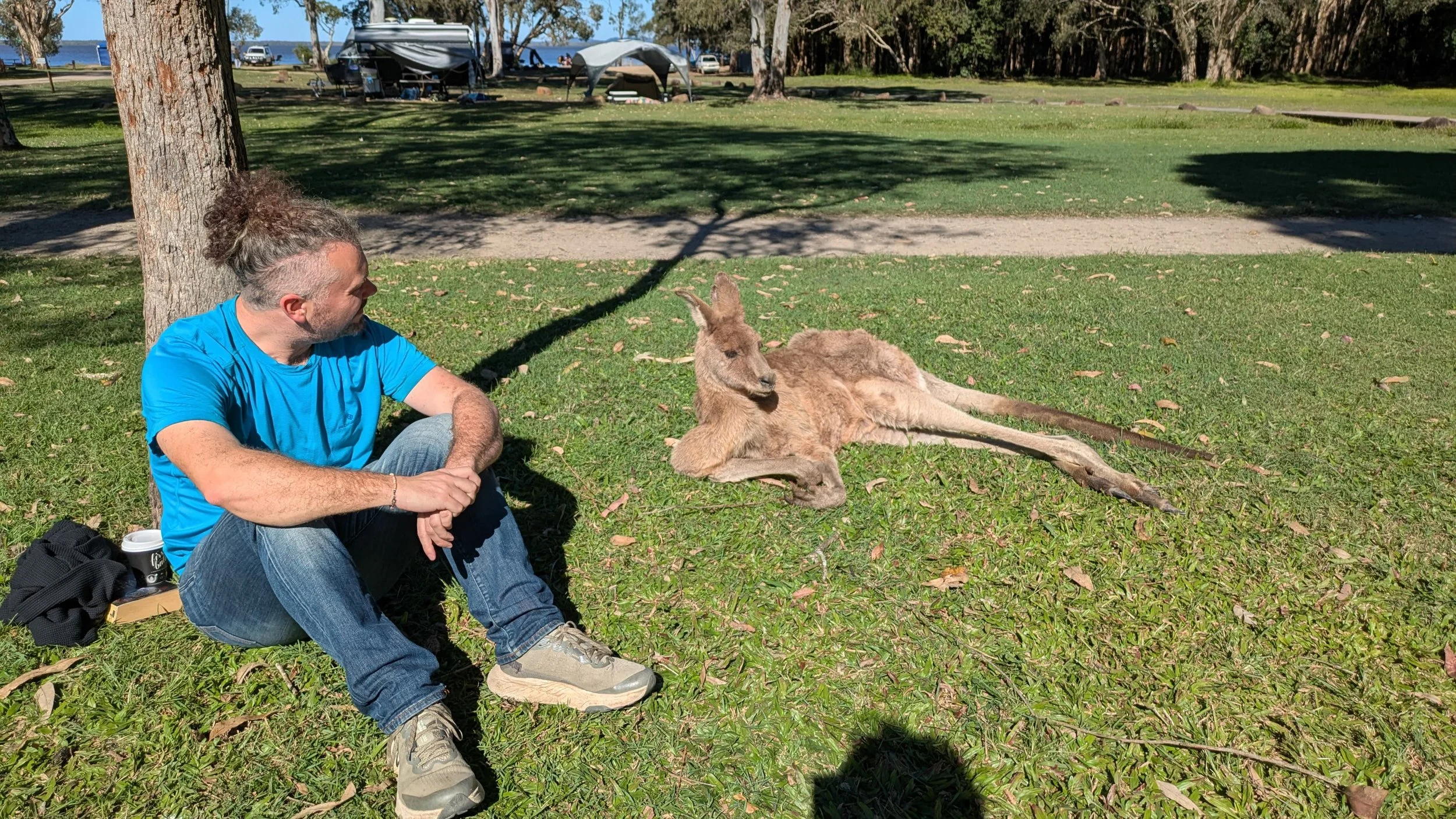I still haven’t really recovered from exhausting my energy in New Zealand and I arrived at the hostel still needing to rest. I rested, eventually went to sleep in my dorm (actually a large glamping style tent) and woke up in time to see the sun rise over the lake. The colours were beautiful and a couple of kangaroos hopped past on their way to start their days. The wild kangaroos are one of the main draws of this hostel - they live nearby and often eat and rest on grassy spots nearby. They come and go as they please but seem to enjoy being around the human presence, or at least are untroubled by it. My day of relaxation consisted of a walk around the mangroves, a nap, reading on the sand next to the lake, and watching the sunset colours appear and practicing my Spanish with Daniela, also staying at the hostel.